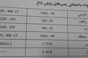 ۲-۴-۱۰- مواد ساختمانی (متریال) پمپ های روغن داغ حلزونی پمپ های روغن داغ، باید از متریال ۴۰-GGG ساخته شود. از