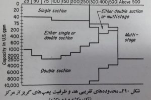 ۴-۱-۶- طرح های تک مکشه در مقایسه با طرح های دو مکشه شکل ۲۹۰، محدوده های تقریبی را که در پمپ های تک مکشه